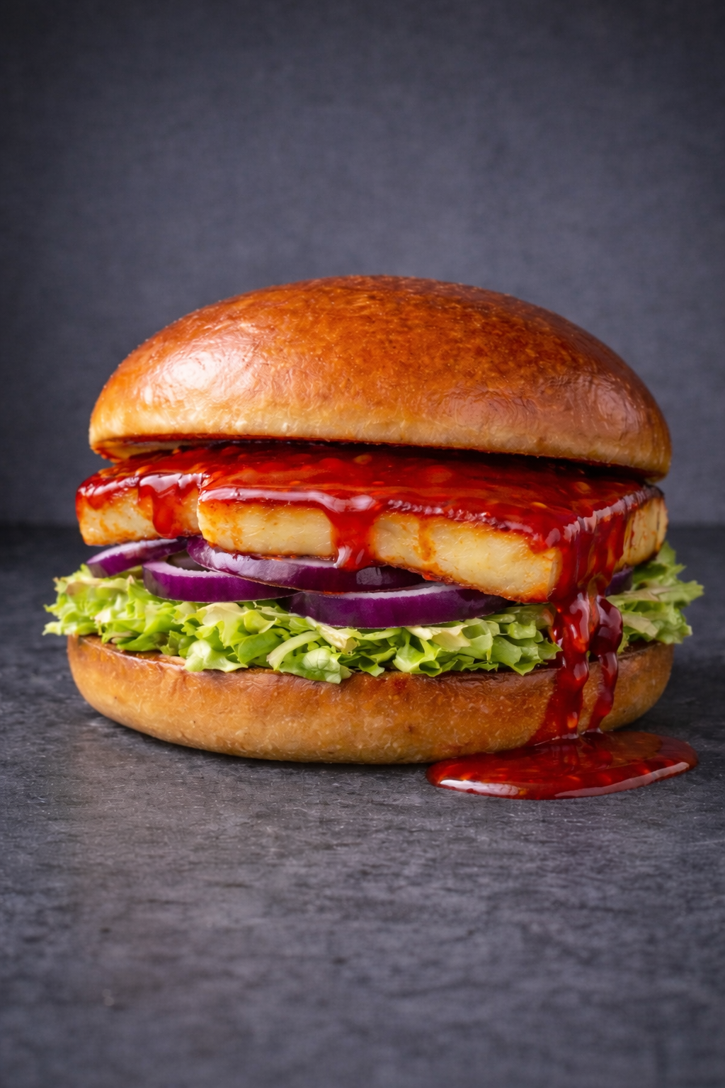 Double Char Grilled Halloumi . Chilli Jam . Crispy Lettuce . Sliced Red Onion . Toasted Alabama Grill House Bun