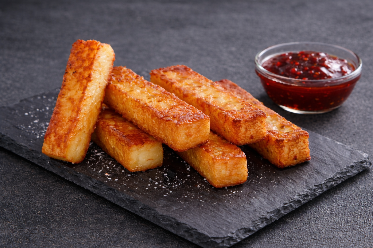 6 x Crispy Halloumi Sticks . Pot of Sweet Chilli Dip