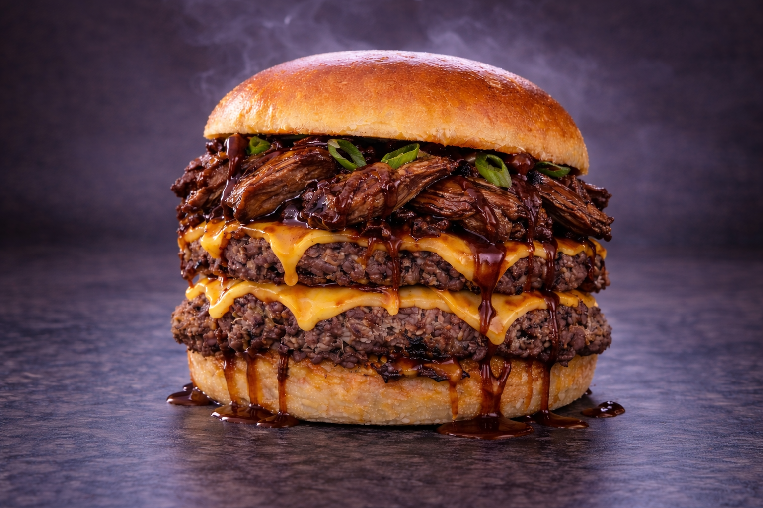 Double In House smashed beef, Double cheese, Hoisin duck, Spring onion, Hoisin drizzle.